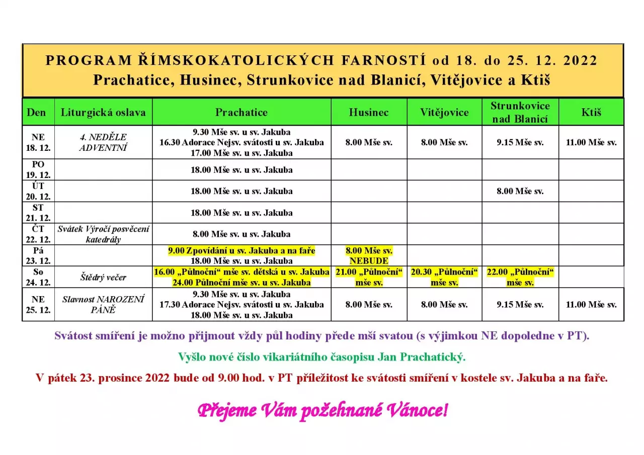 Bohoslužby v Prachaticích a okolí