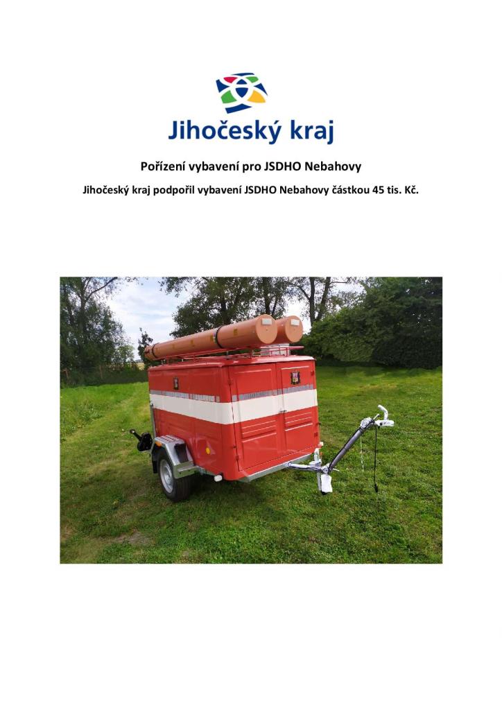 Jihočeský kraj podpořil vybavení JSDHO Nebahovy částkou 45 tis. Kč.