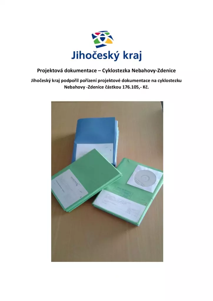 Jihočeský kraj podpořil pořízení projektové dokumentace na cyklostezku Nebahovy -Zdenice částkou 176.105,- Kč.