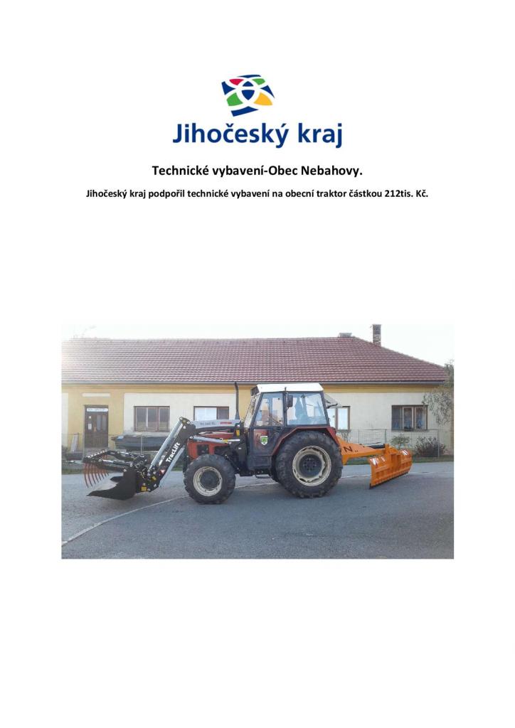 Jihočeský kraj podpořil technické vybavení na obecní traktor částkou 212tis. Kč.